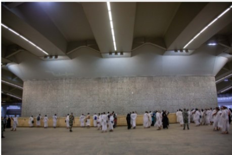 Salah satu ciri kuil Mina yang paling menonjol ialah Jamarat atau tiga tiang yang dilontar, yang terletak di Jambatan Jamarat. Tiga Jamarat terletak di dalam perut Lembah Mina dan kini berada di dalam Jambatan Jamarat, yang adalah salah satu pencapaian besar yang disediakan oleh kerajaan Kerajaan untuk menguruskan orang ramai dan mencapai keselamatan mereka ketika mereka pergi melontar Jamarat. Pada permulaan Hari Korban, tujuh kerikil dilemparkan di Jamrah Besar sahaja, dan pada hari Tasyriq, tujuh Jamrah dilemparkan pada setiap Jamrah, bermula dengan Kecil, kemudian Tengah, dan kemudian Besar.Jemaah haji boleh membuangnya di mana-mana tingkat Jambatan Jamarat, dan sangat penting bagi jemaah haji untuk mematuhi tarikh penjadualan yang ditetapkan untuknya oleh penganjur untuk merejam Jamarat dan arah pergerakan demi menjaga keselamatannya. dan keselamatan orang lain.Jamarat terdiri daripada empat tingkat berulang, sebagai tambahan kepada tingkat bawah, dan lebarnya mencapai 80 meter dengan 12 pintu masuk ke Jamarat dan 12 pintu keluar di empat arah, yang mengurangkan titik kesesakan dan jambatannya dihubungkan ke kem jemaah haji.