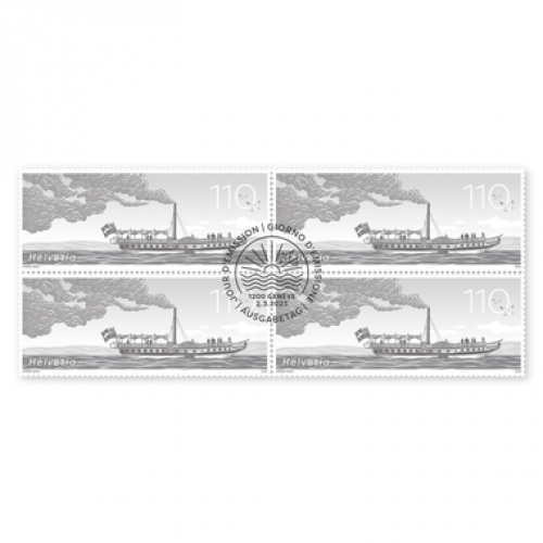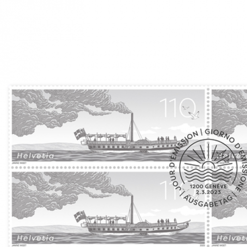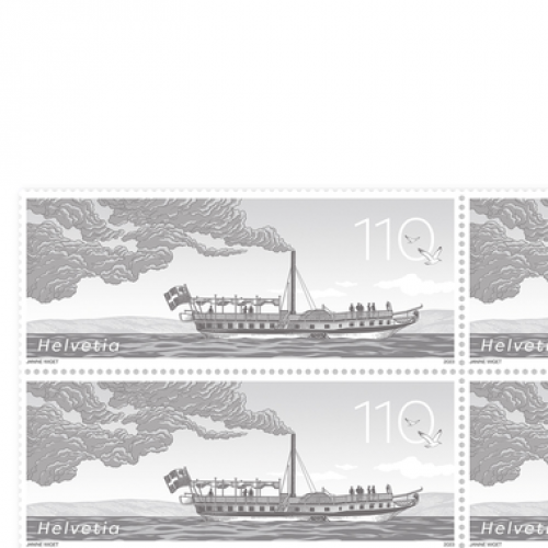 Measuring 80 × 33 millimetres, the special stamp shows a historical milestone for which there are no photos and very few drawings: the Guillaume Tell, Switzerland’s first steamboat. With a view to creating a retrospective for the anniversary, a dark special colour was chosen for the illustration. Almost as if it was designed all those years ago. Back then, the Guillaume Tell plied its trade between Geneva and Lausanne.