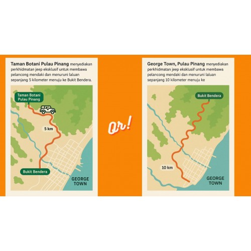 Botanical Gardens has a jeep service that will take tourists up and down the road which is 5 km to Penang Hill. The price for the one-trip jeep service starting from RM 140 + RM10 services charge per jeep - (extra charge for pickup service door-to-door) and can accommodate 4 people from Botanical Garden to Penang Hill and back to Botanical Garden. The driver on duty will also tell stories about each attraction along the way. By riding this jeep, you will see many old bungalow houses that are decades old and have the influence of old English architecture. One of the best stops here is a stop at a hut that has a stunning view of the city of Penang. In general, the round trip of 4-5 km is very relaxing and you can try this activity after you are tired of walking in other interesting places in Penang Hill or Bukit Bendera.